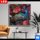 Wechselmotiv Acrylglas Canvalight® DIA | Prachtvoller Pfau und Blüten | Schmal