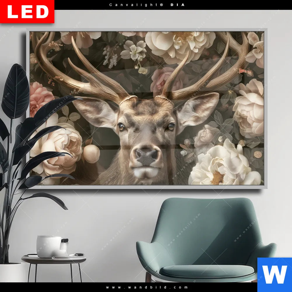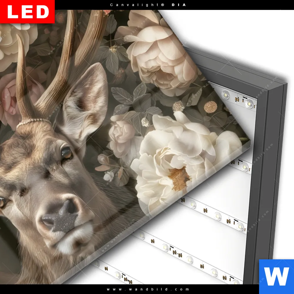 Wechselmotiv Acrylglas Canvalight® DIA | Romantischer Hirsch mit Blumen | Querformat