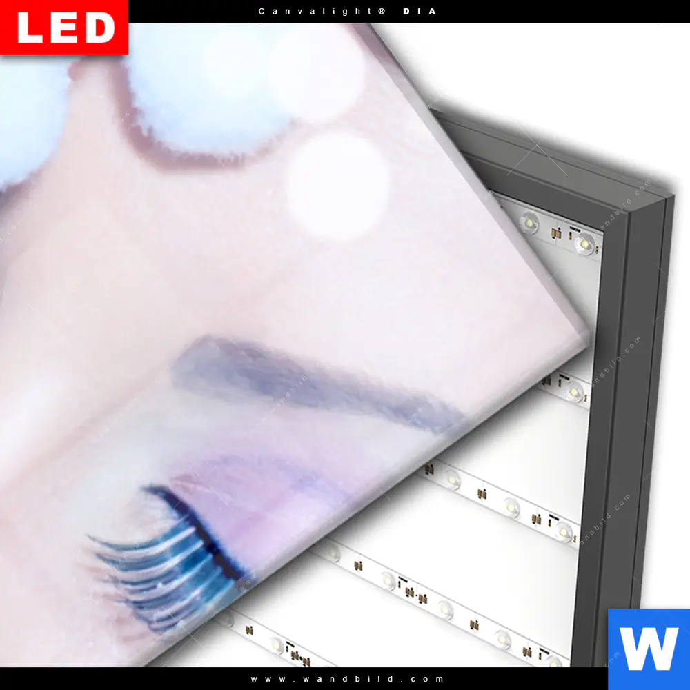 BEACHTE: Du solltest bereits ein Canvalight® DIA Leuchtbild mit austauschbarem Acrylglas-Motiv besitzen! Im Lieferumfang ist nur ein Wechsel-Acrylglas-Druck ohne Leuchtrahmen enthalten. Der Abdeckwinkel im Frontbereich des LED Bildes deckt umlaufend ca. 19 mm des Motives ab. Bei eigenen Motiven bitte darauf achten, wichtige Elemente in ausreichender Entfernung vom Rand zu platzieren, damit diese nicht verdeckt werden.