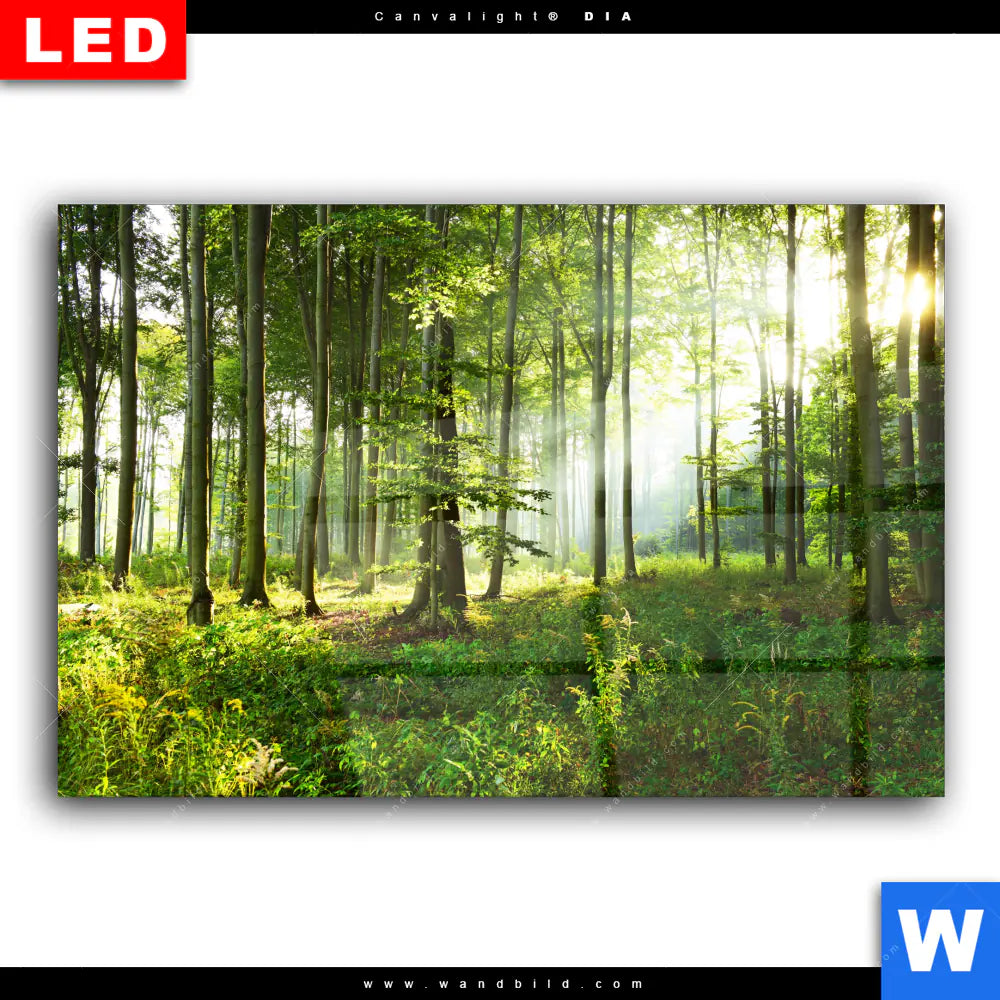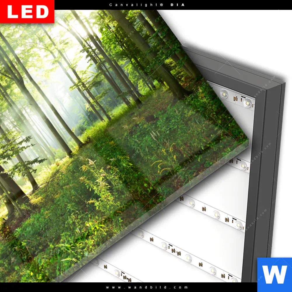 Wechselmotiv Acrylglas Canvalight® DIA | Sonniger Morgen im Wald | Querformat