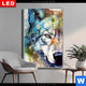 Wechselmotiv Acrylglas Canvalight® DIA | Wolf mit bunten Farbspritzern No. 2 | Querformat