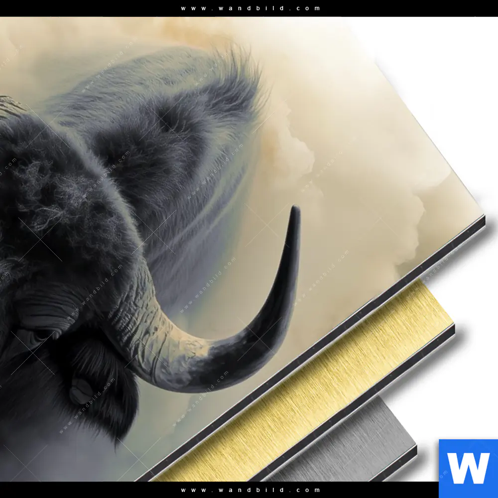 Aluminiumbild gebürstet | Mächtiger Büffel | Hochformat