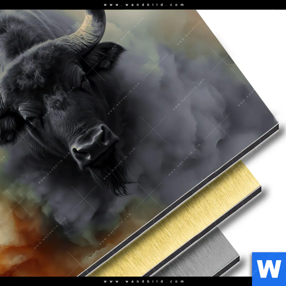 Aluminiumbild gebürstet | Mächtiger Büffel | Quadrat
