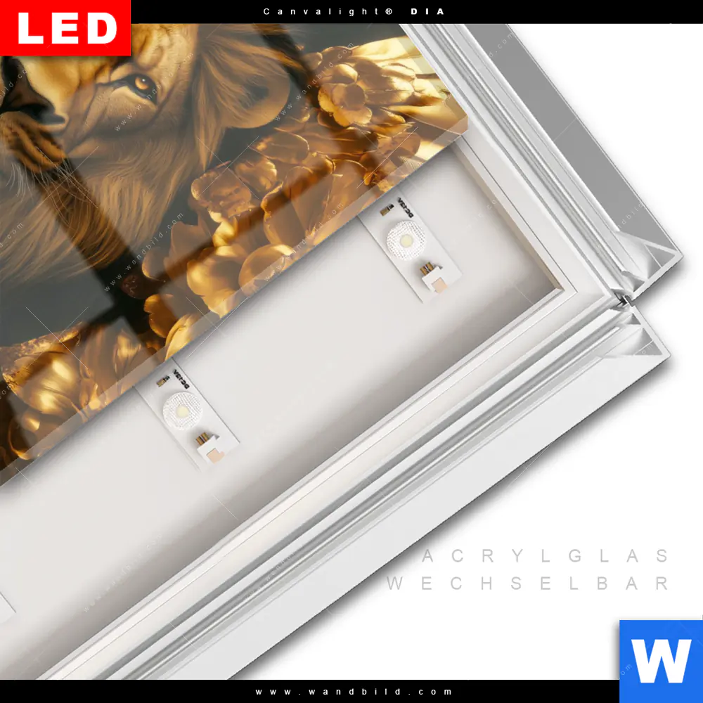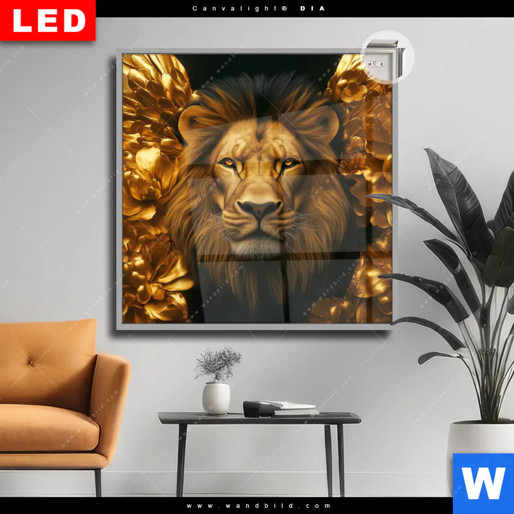 Canvalight® DIA Leuchtbild | Goldener Löwe | Quadrat