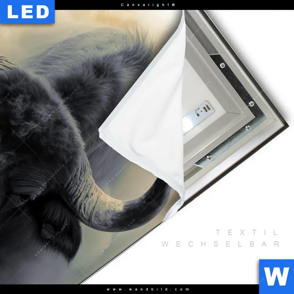 Canvalight® TEX Leuchtbild | Mächtiger Büffel | Hochformat