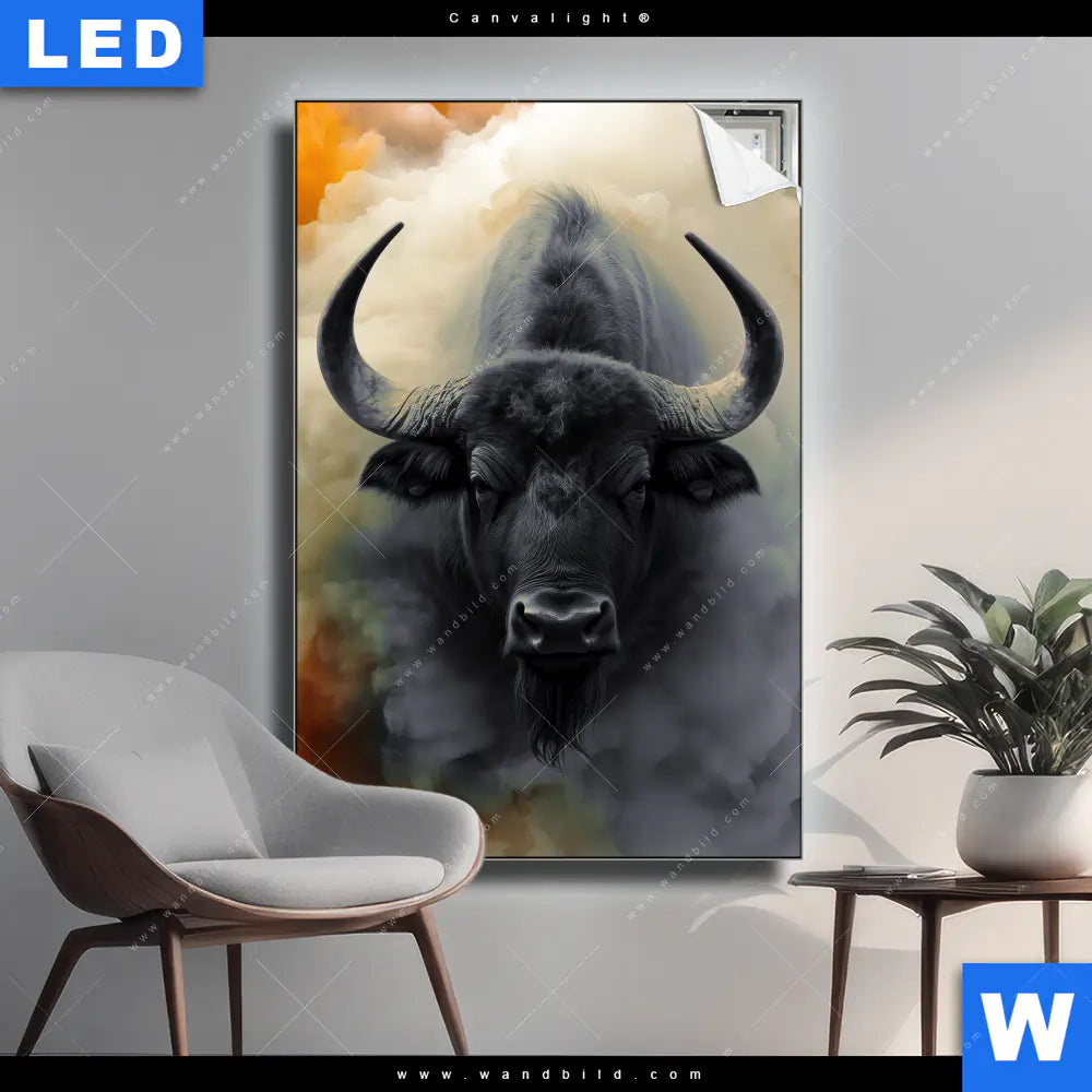 Canvalight® Leuchtbild | Mächtiger Büffel | Hochformat