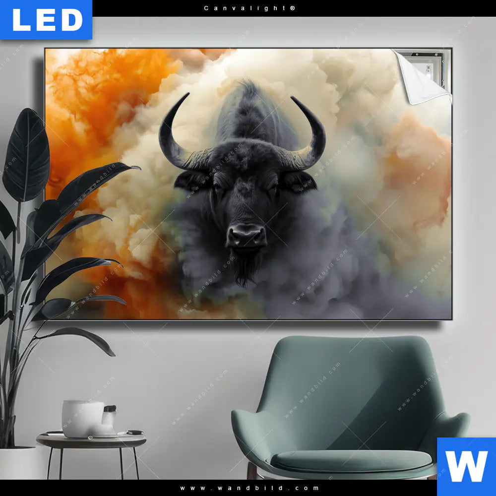 Canvalight® Leuchtbild | Mächtiger Büffel | Querformat