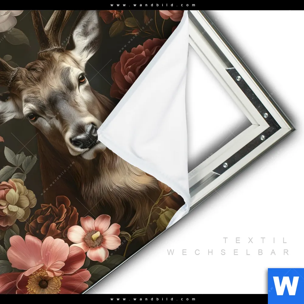 Spannbild | Friedlicher Hirsch und Blüten | Quadrat
