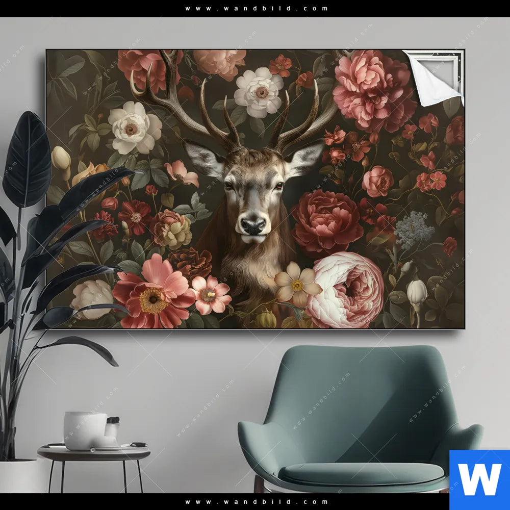 Spannbild | Friedlicher Hirsch und Blüten | Querformat