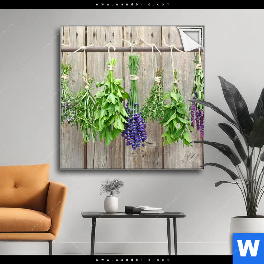 Spannbild | Frische Kräuter an Holzstange | Quadrat