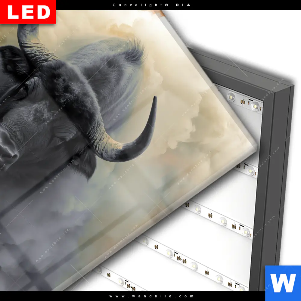 Wechselmotiv Acrylglas Canvalight® DIA | Mächtiger Büffel | Quadrat