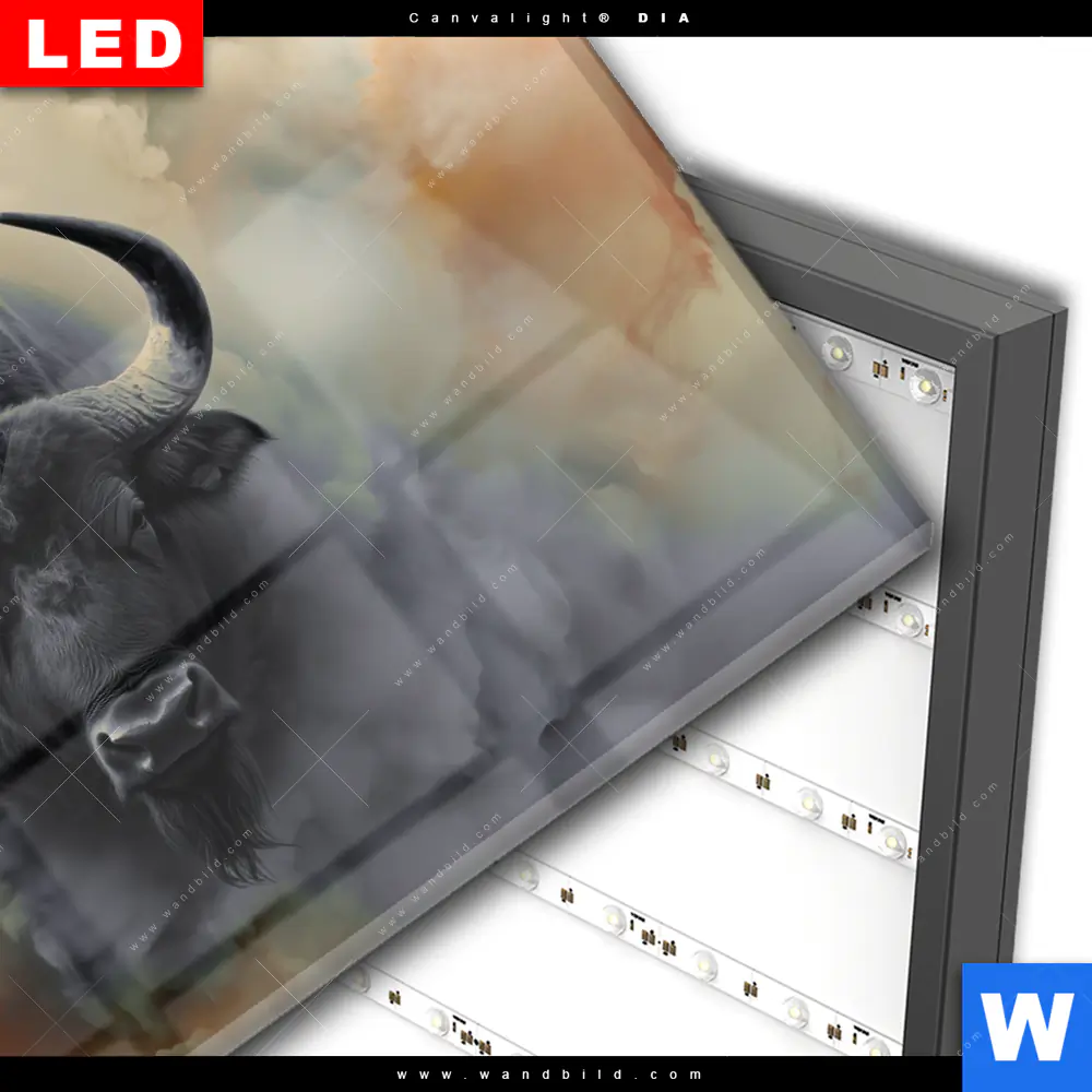 Wechselmotiv Acrylglas Canvalight® DIA | Mächtiger Büffel | Querformat