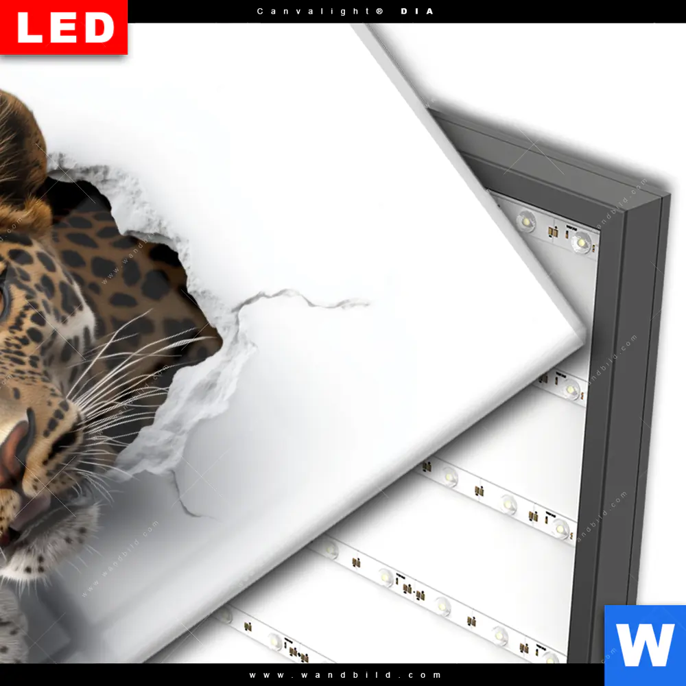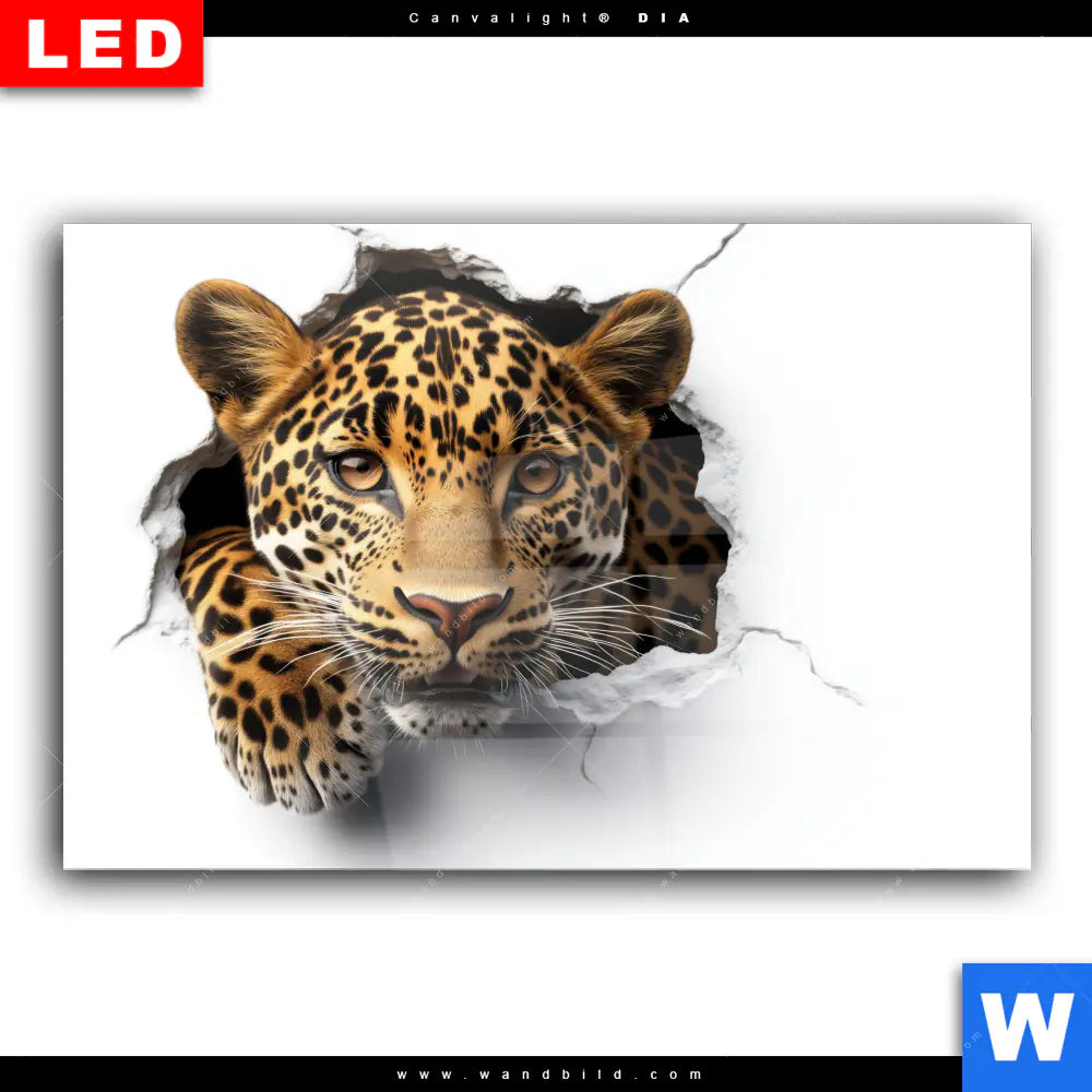 Wechselmotiv Acrylglas Canvalight® DIA | Wanddurchbruch - Leopard | Querformat