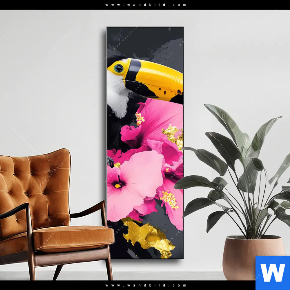 Wechselmotiv | Exotischer Tukan mit Blüten | Schmal