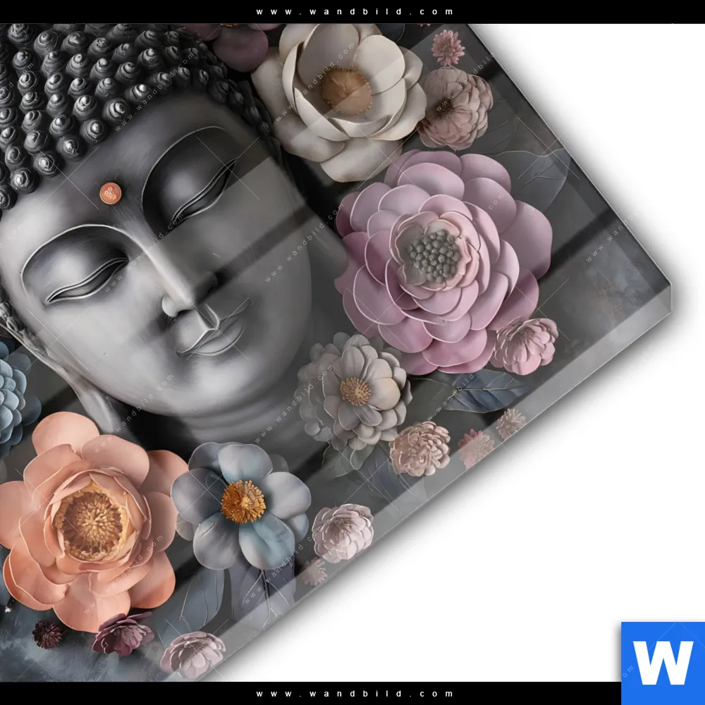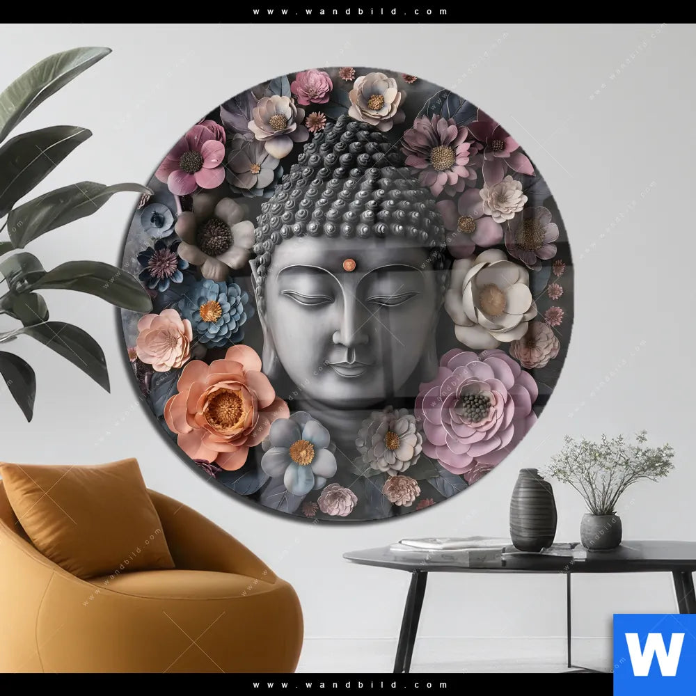 Acrylglasbild | Buddha-Kunst mit Pastellblüten | Rund