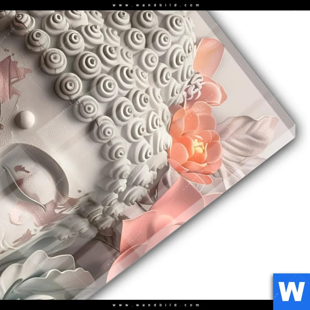 Acrylglasbild | Pastellblüten und Buddha | Hochformat