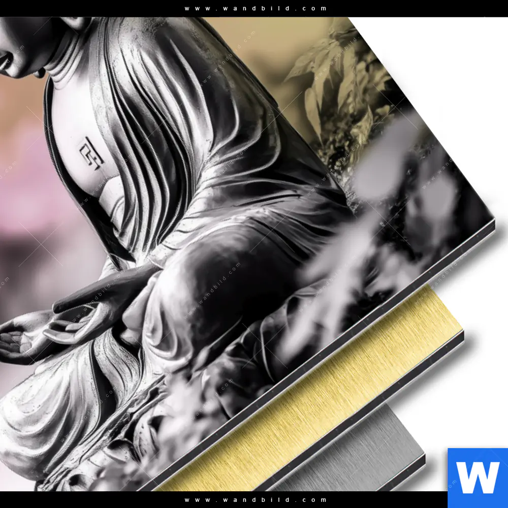 Buddha - Feng Shui Aluminiumbild mit metallischem Effekt inkl. vormontiertem Rückrahmen