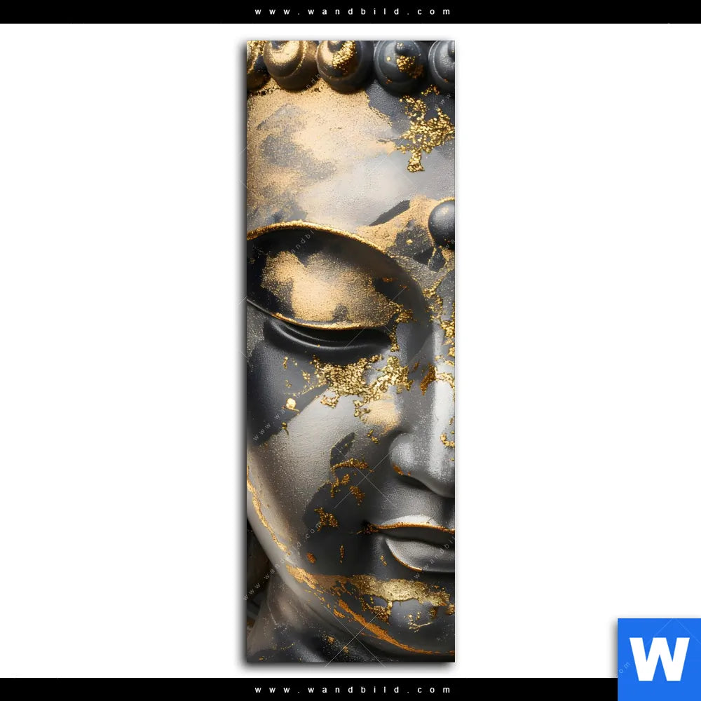 Aluminiumbild gebürstet | Goldener Buddha Fluid Art | Schmal