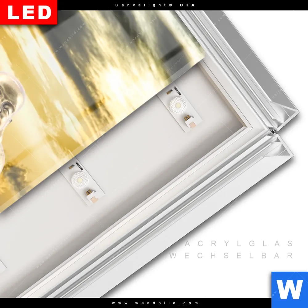 LED-Glasbild mit austauschbarem Acrylglas-Druck (Wechselbild)