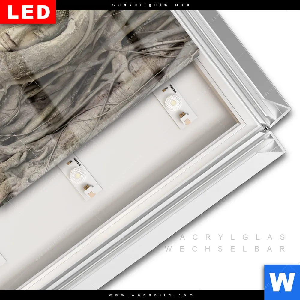 LED-Glasbild mit austauschbarem Acrylglas-Druck (Wechselbild)