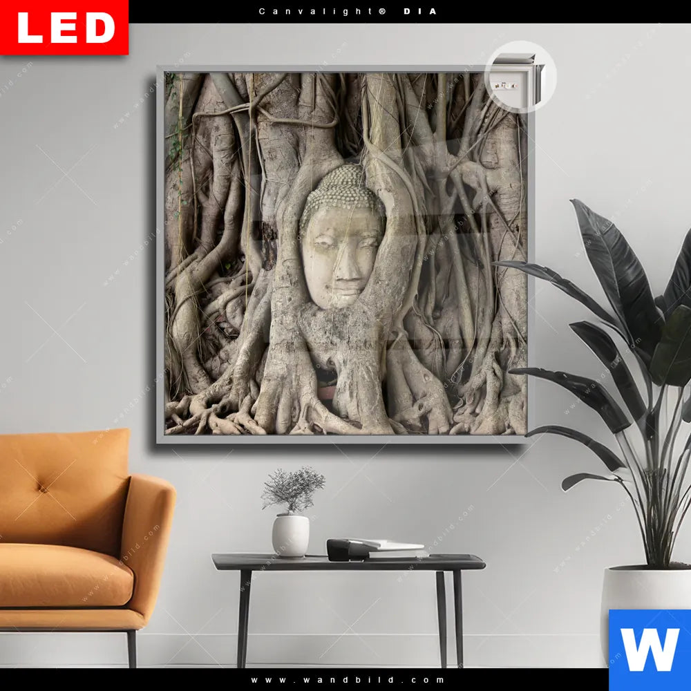 Canvalight® DIA Leuchtbild | Buddha in Baumwurzeln | Quadrat