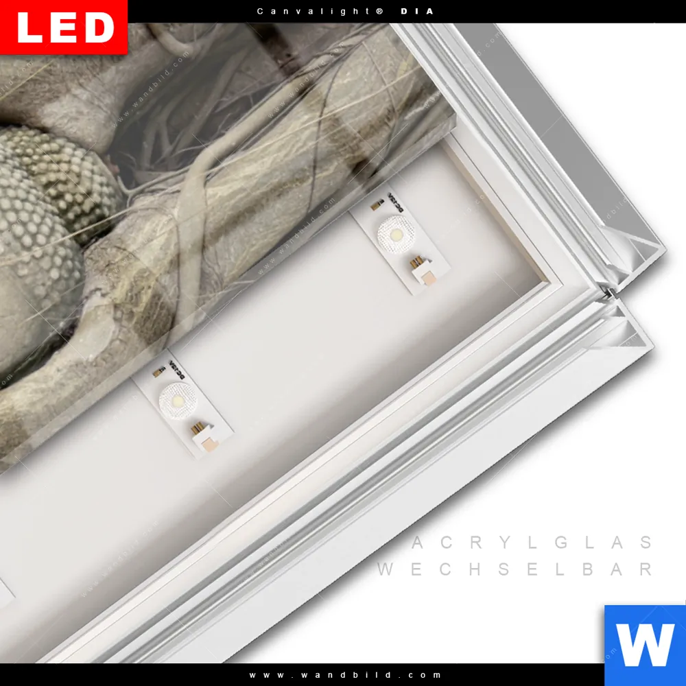 LED-Glasbild mit austauschbarem Acrylglas-Druck (Wechselbild)