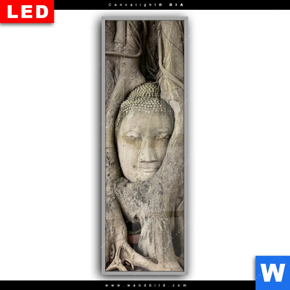 Canvalight® DIA Leuchtbild | Buddha in Baumwurzeln | Schmal