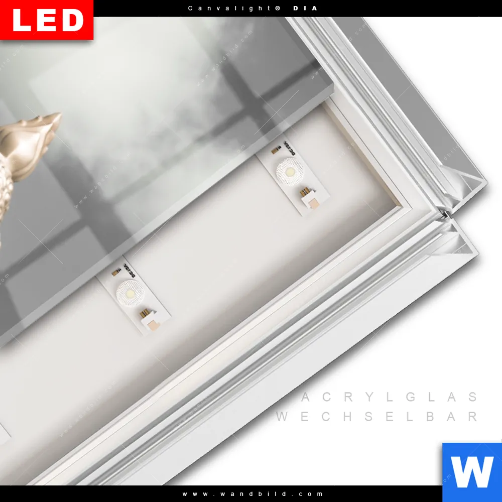 LED-Glasbild mit austauschbarem Acrylglas-Druck (Wechselbild)