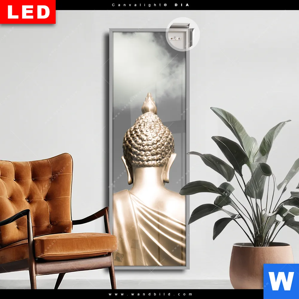 Canvalight® DIA Leuchtbild | Goldene Buddha Statue | Schmal
