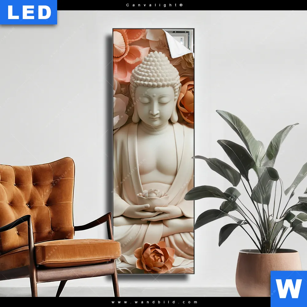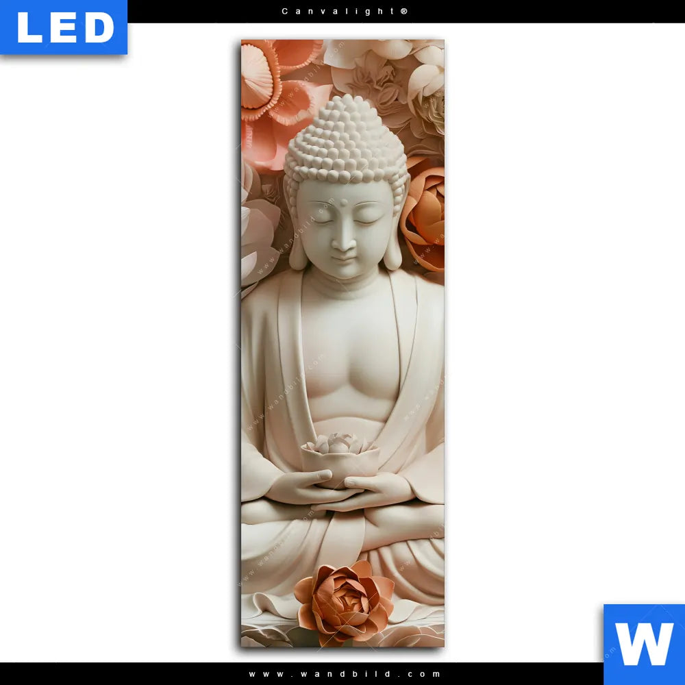 Canvalight® Leuchtbild | Meditierender Buddha mit Blüten | Schmal