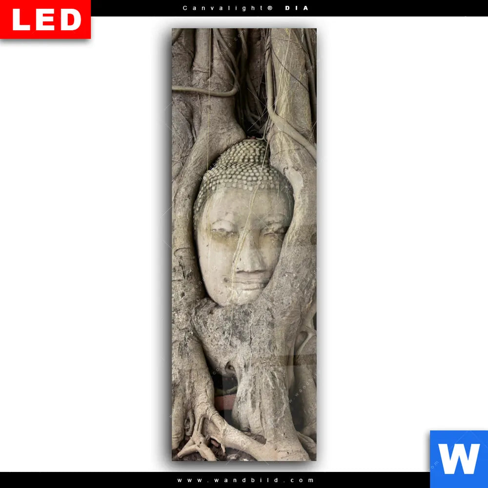 Wechselmotiv Acrylglas Canvalight® DIA | Buddha in Baumwurzeln | Schmal