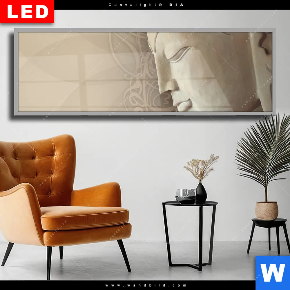 Wechselmotiv Acrylglas Canvalight® DIA | Lächelnder Buddha | Panorama