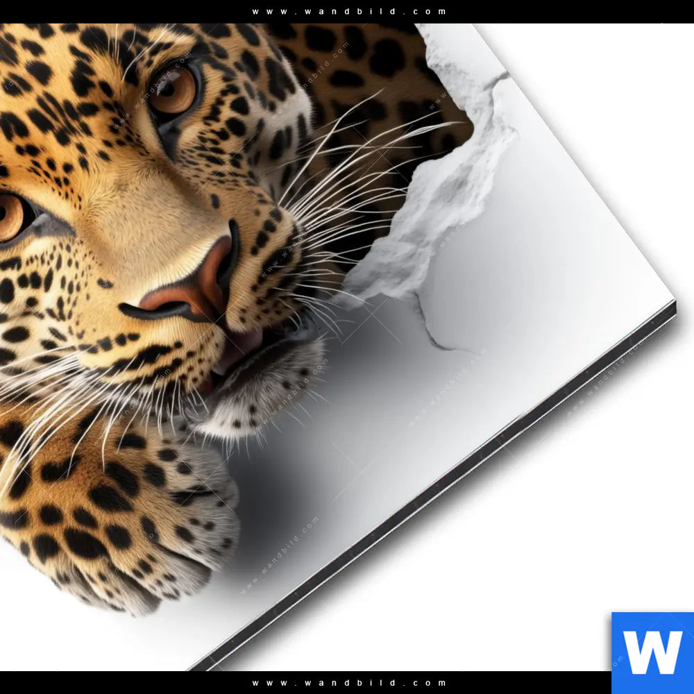 Alu-Dibond Bild | Wanddurchbruch - Leopard | Quadrat