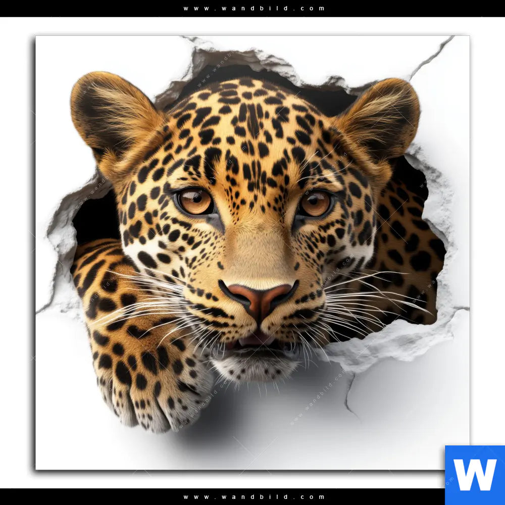 Aluminiumbild gebürstet | Wanddurchbruch - Leopard | Quadrat