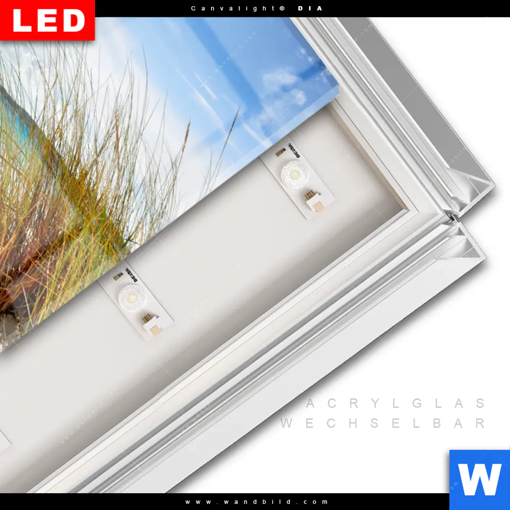 LED-Glasbild mit austauschbarem Acrylglas-Druck (Wechselbild)