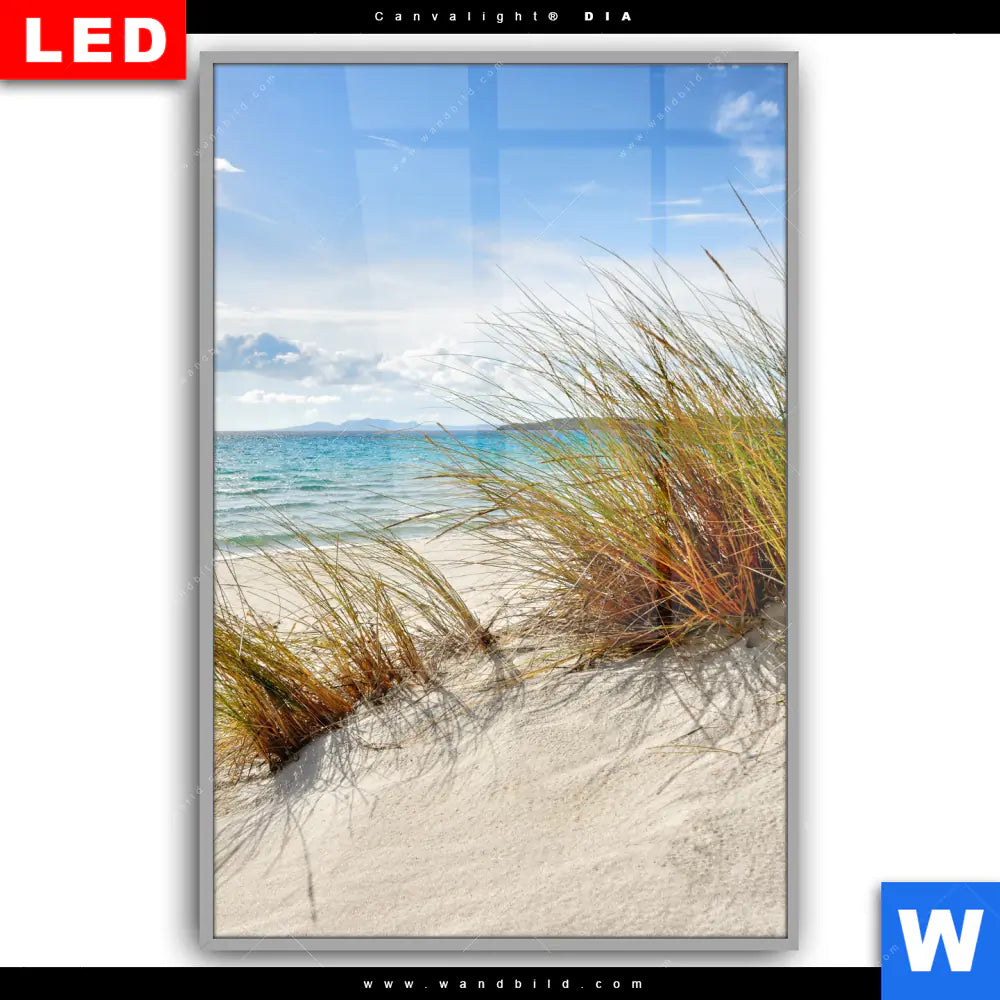 Canvalight® DIA Leuchtbild | Dünenlandschaft mit Meerblick | Hochformat
