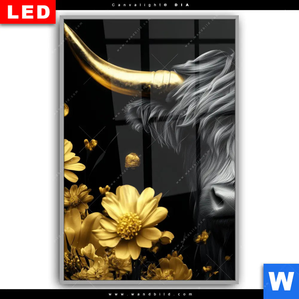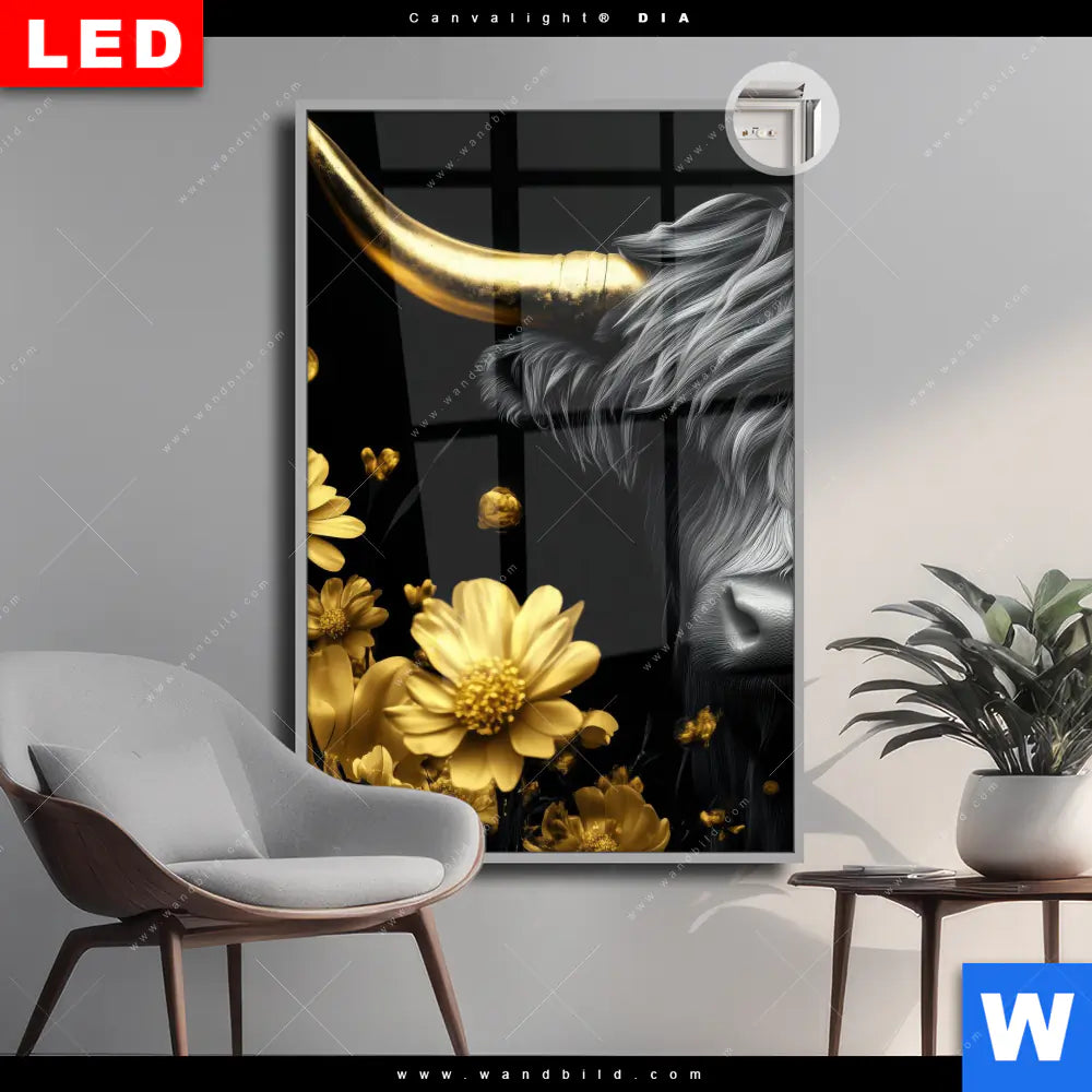 Canvalight® DIA Leuchtbild | Goldenes Hochlandrind | Hochformat