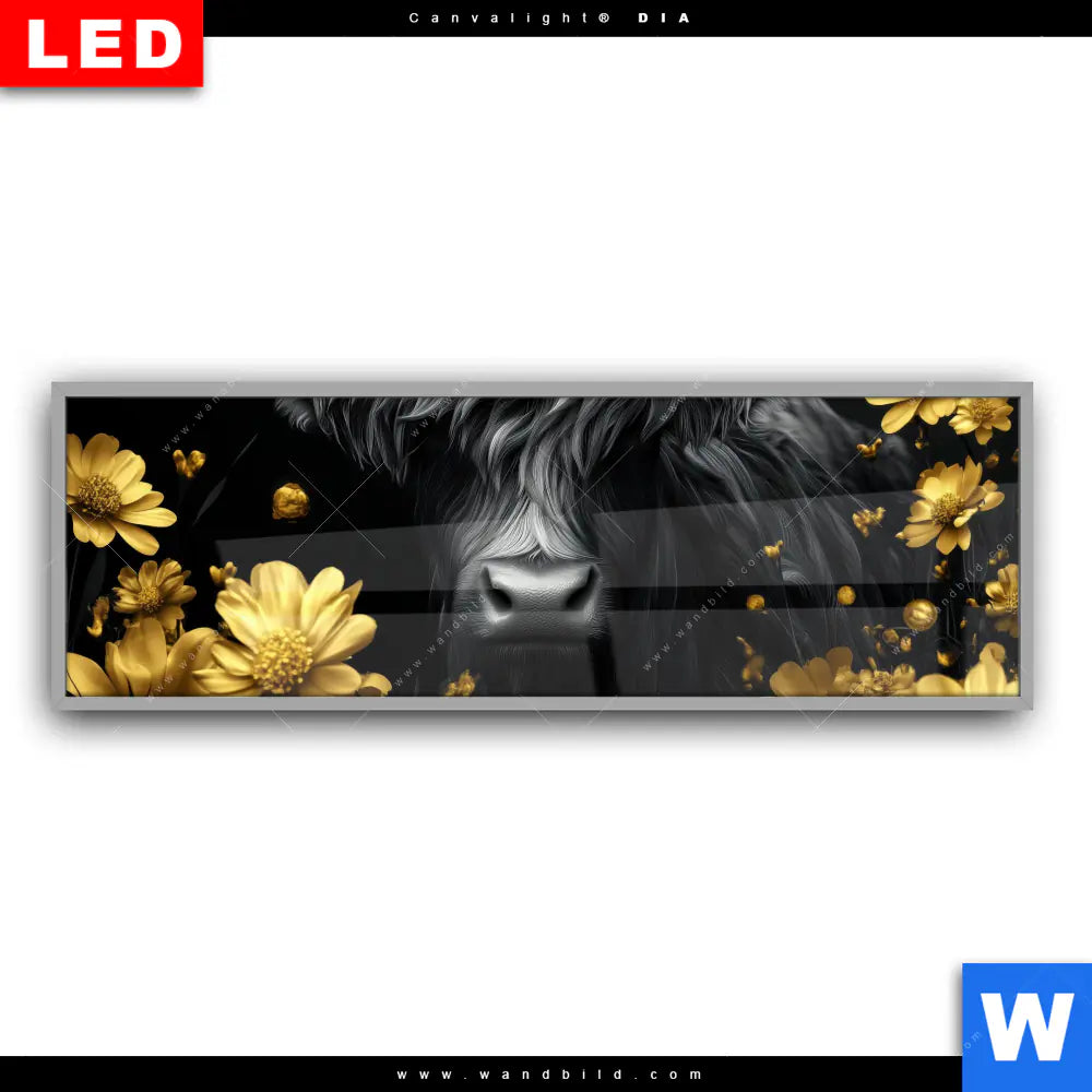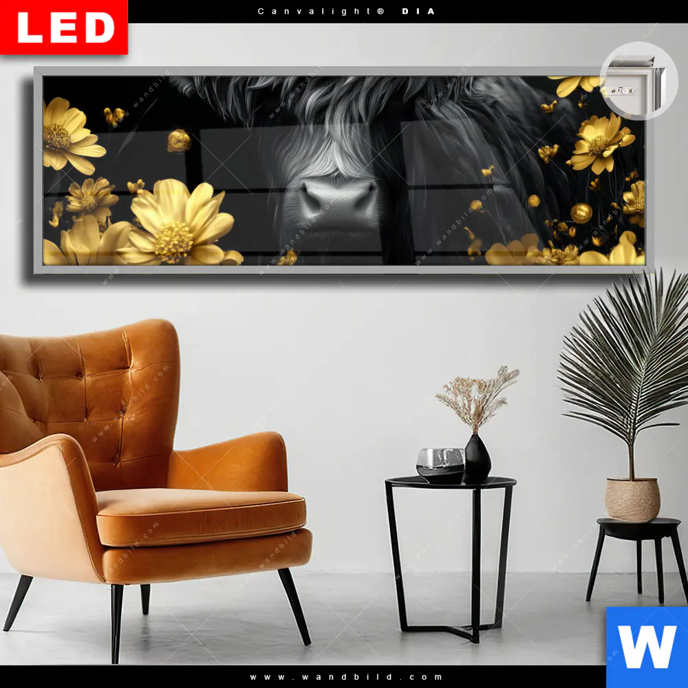 Canvalight® DIA Leuchtbild | Goldenes Hochlandrind | Panorama