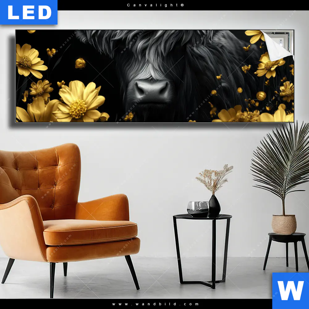 Canvalight® Leuchtbild | Goldenes Hochlandrind | Panorama