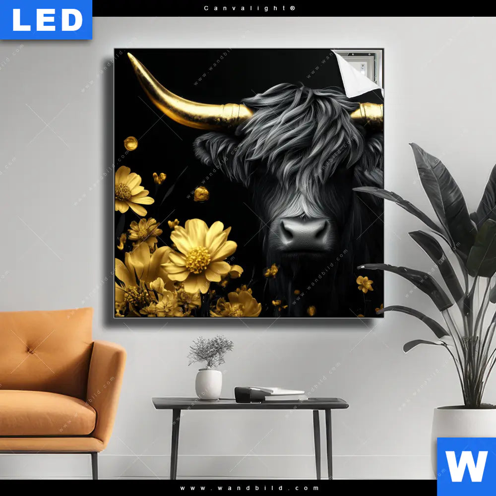 Canvalight® Leuchtbild | Goldenes Hochlandrind | Quadrat