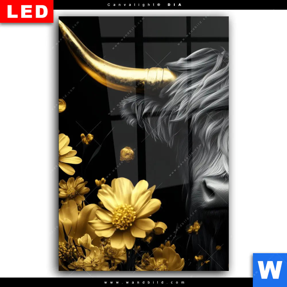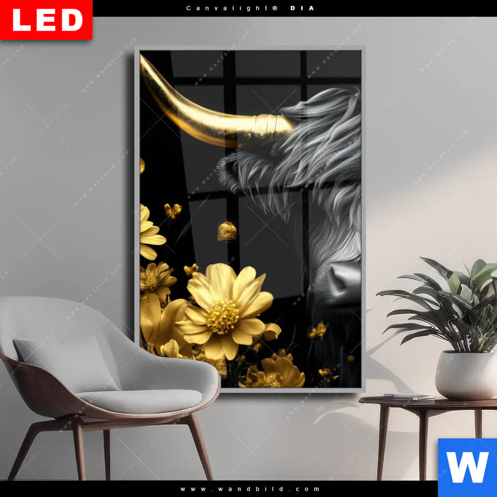 Wechselmotiv Acrylglas Canvalight® DIA | Goldenes Hochlandrind | Hochformat