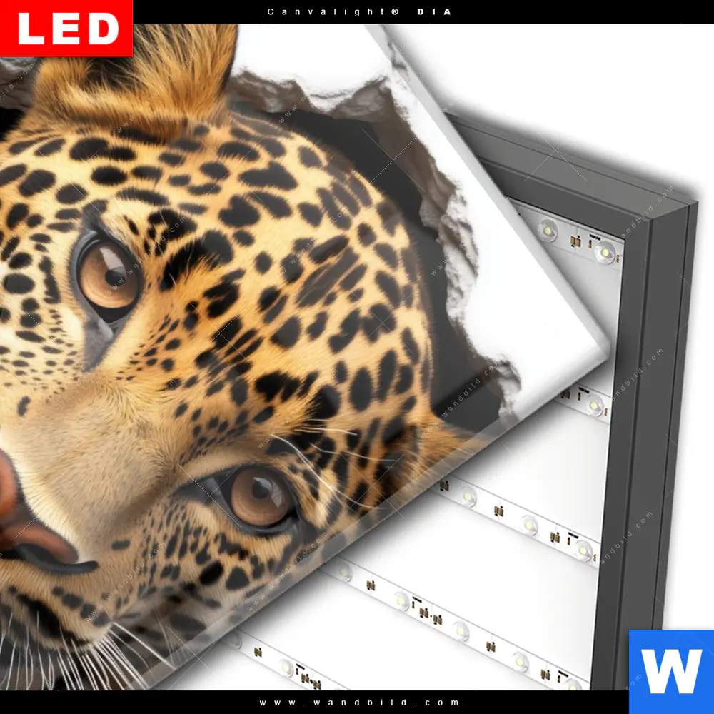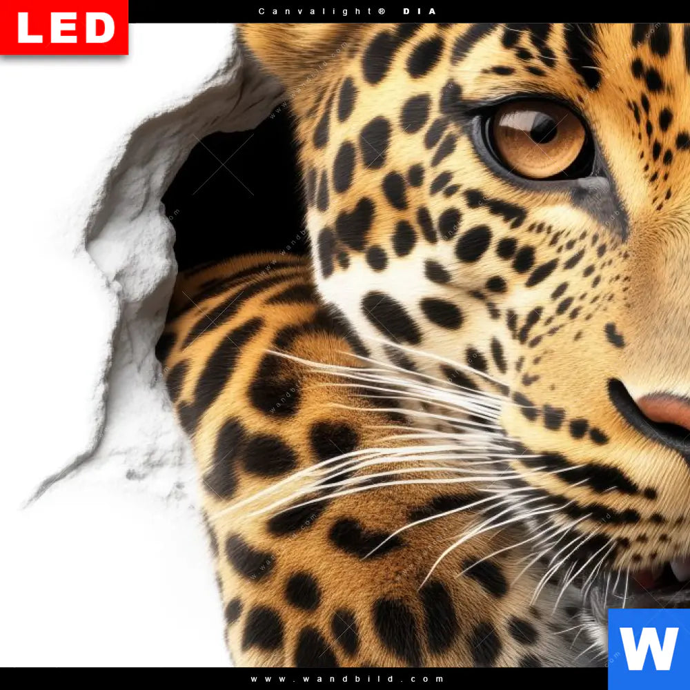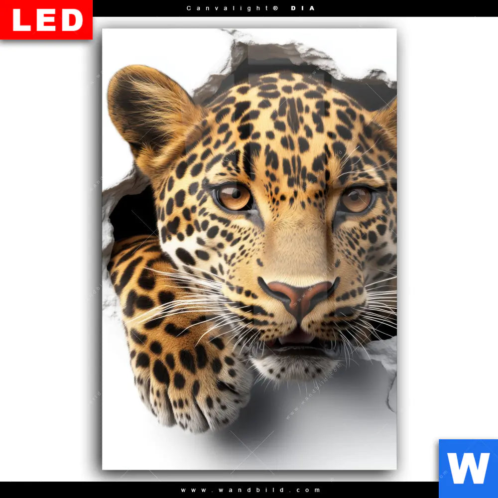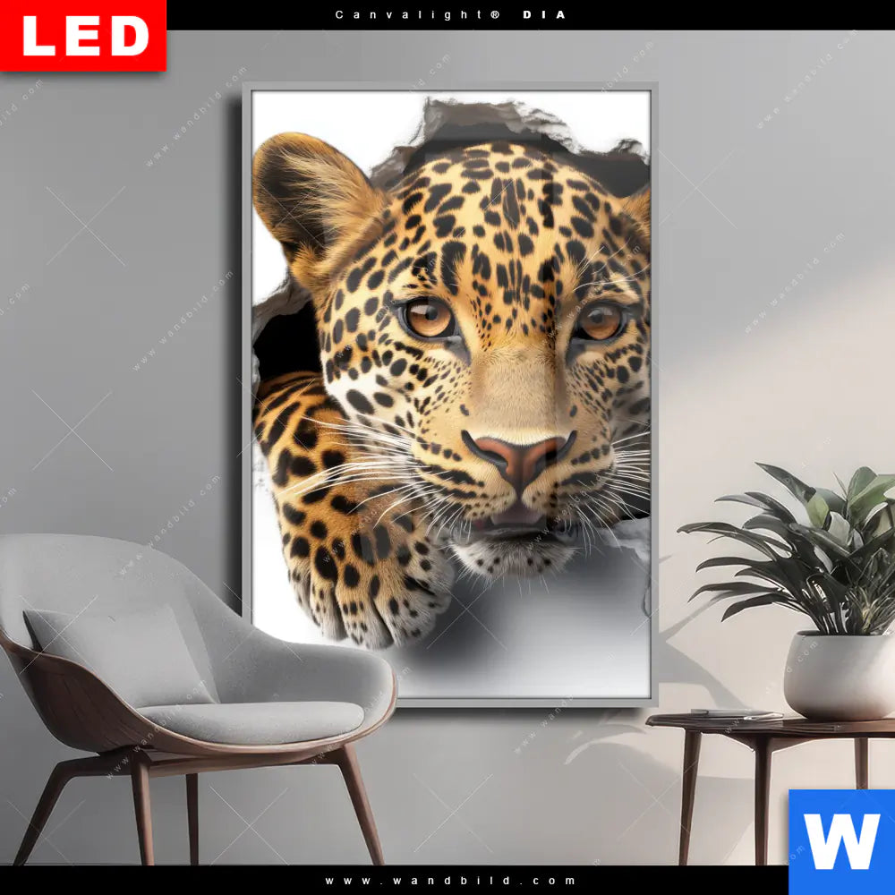 Wechselmotiv Acrylglas Canvalight® DIA | Wanddurchbruch - Leopard | Hochformat