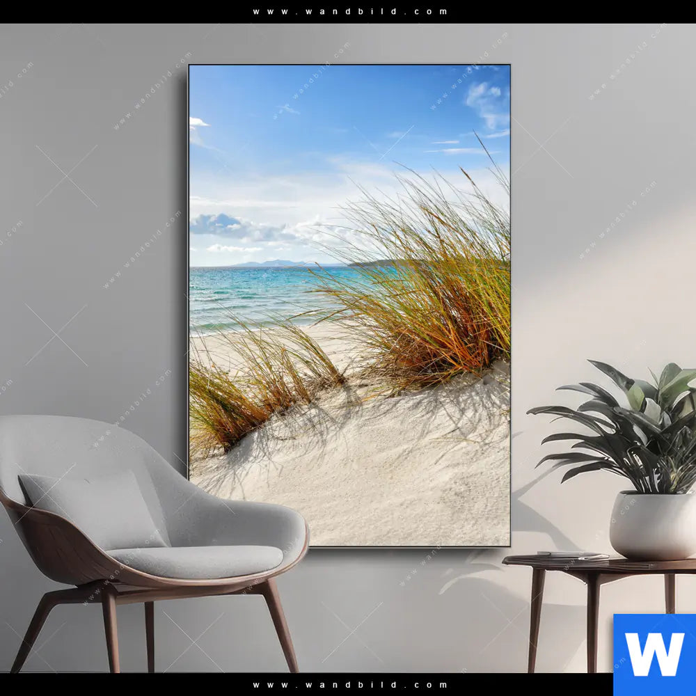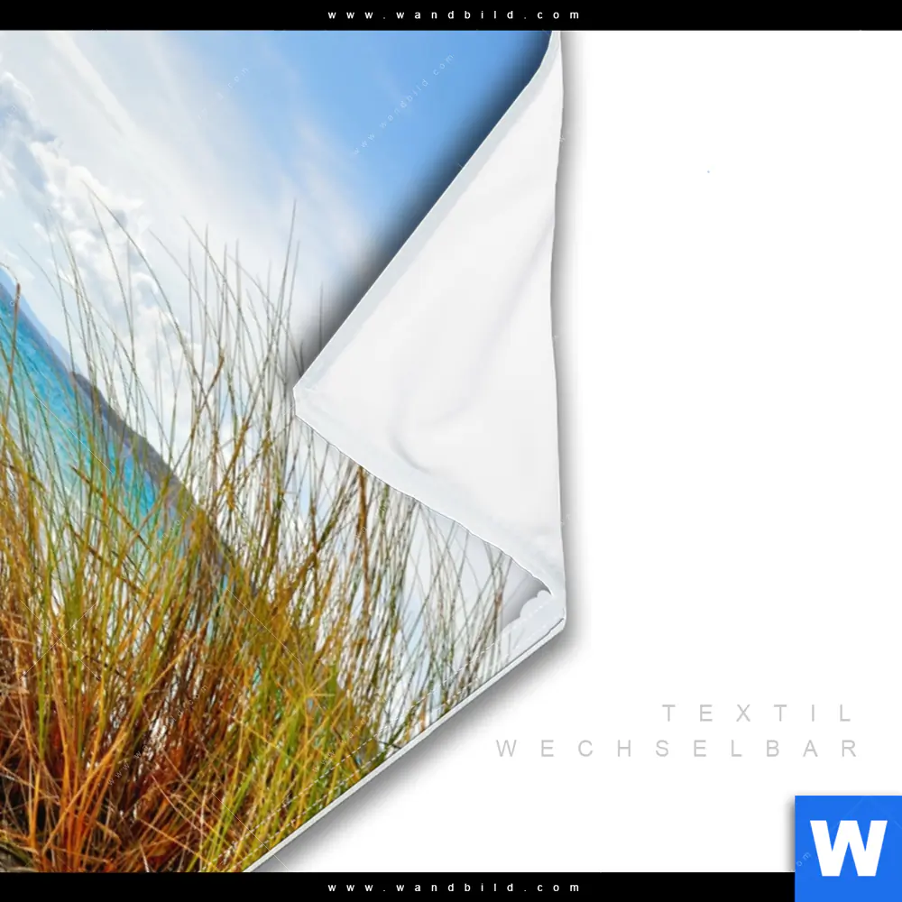 Wechselmotiv Textil | Dünenlandschaft mit Meerblick | Hochformat