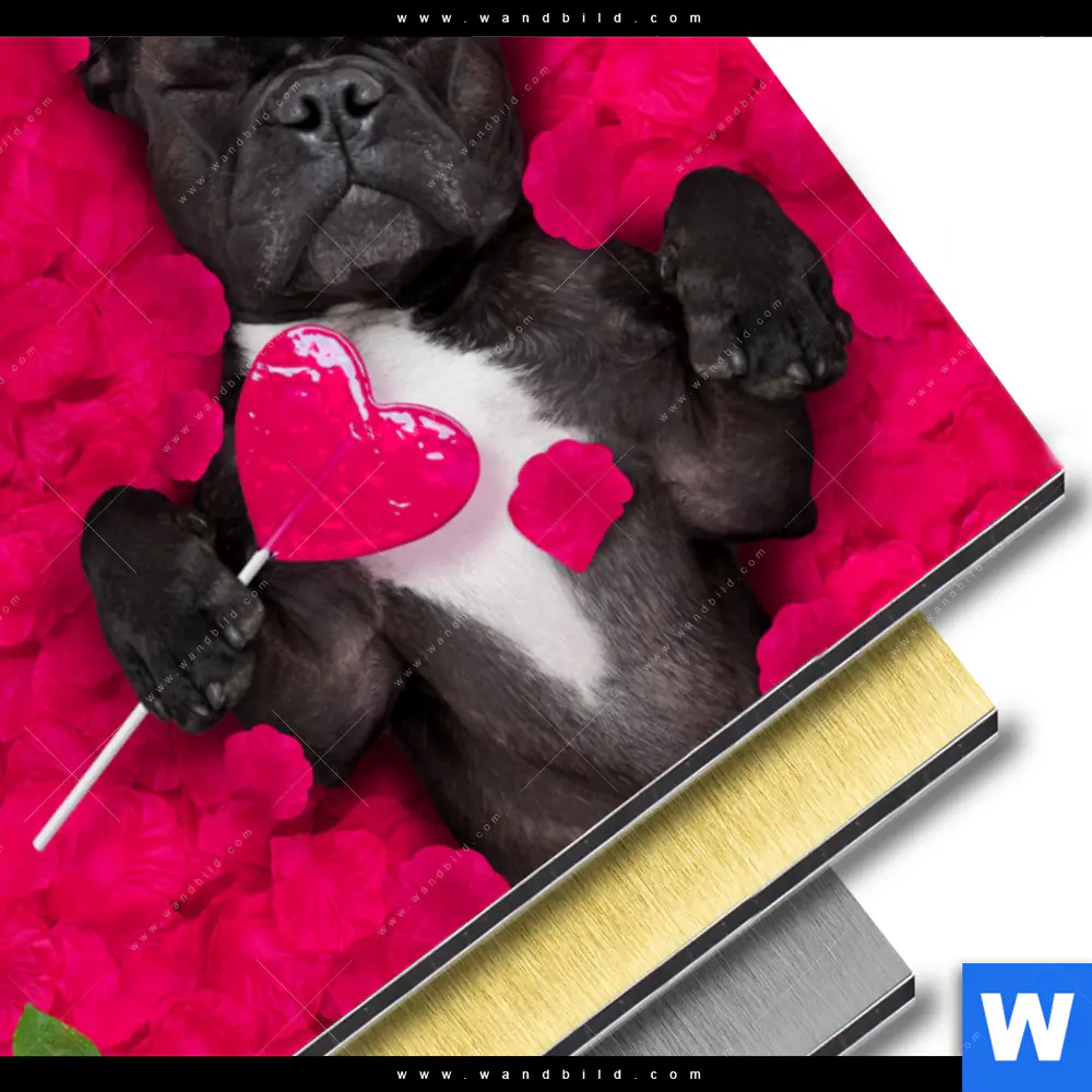 Aluminiumbild gebürstet | Romantik mit süßen Hunden | Querformat
