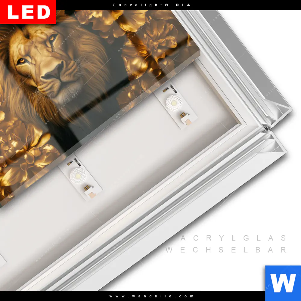 Canvalight® DIA Leuchtbild | Goldener Löwe | Querformat