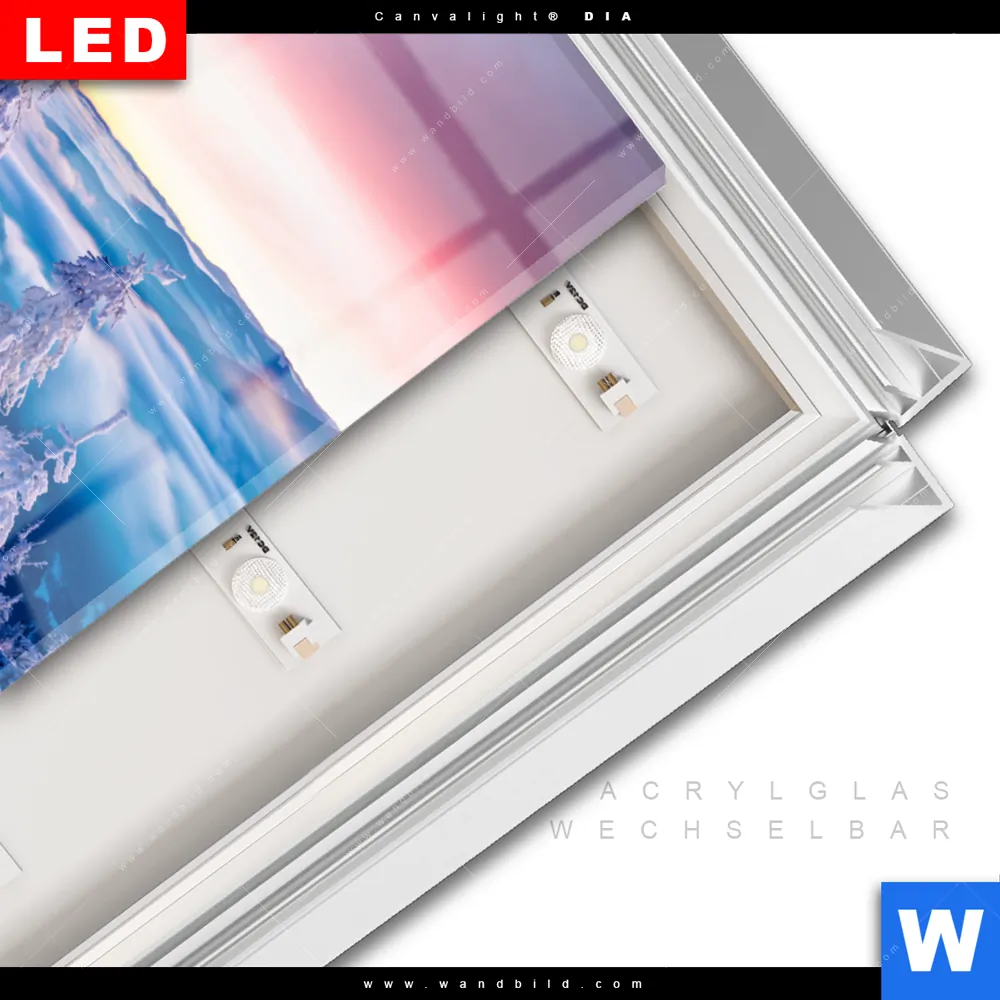 LED-Glasbild mit austauschbarem Acrylglas-Druck (Wechselbild)