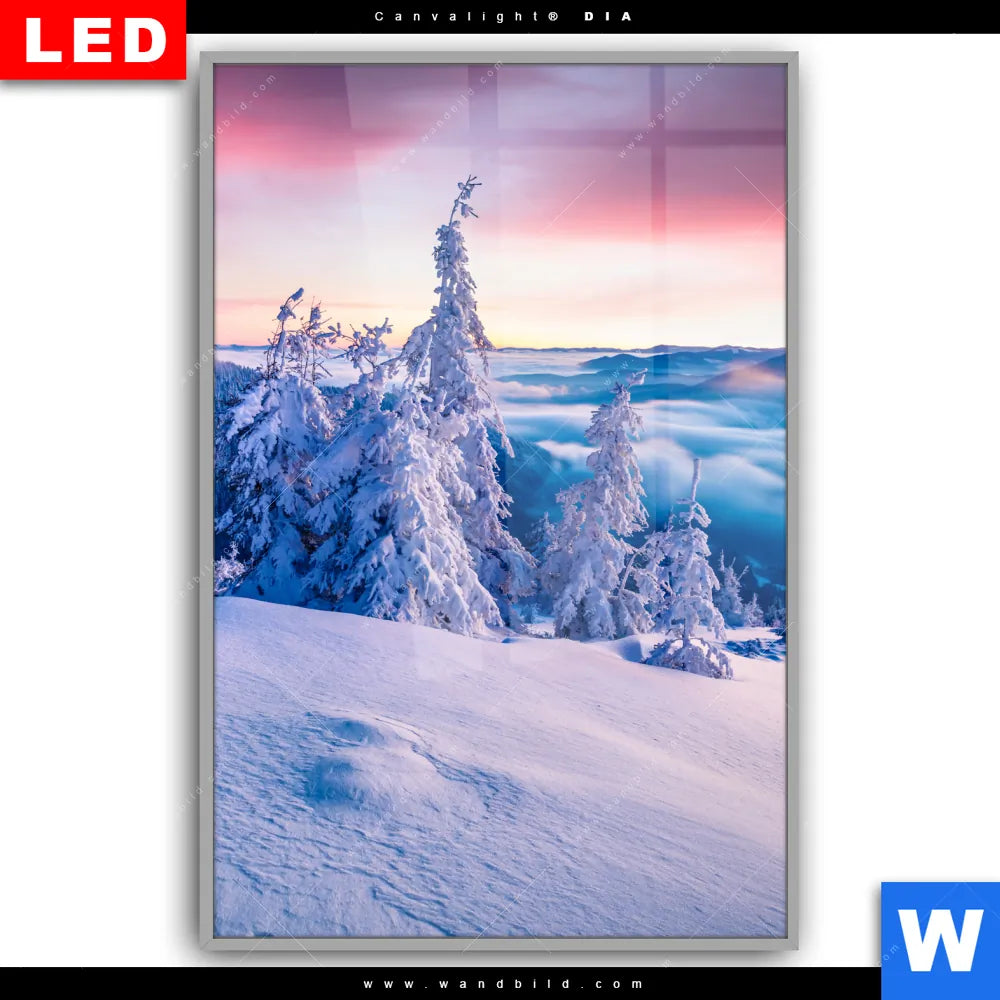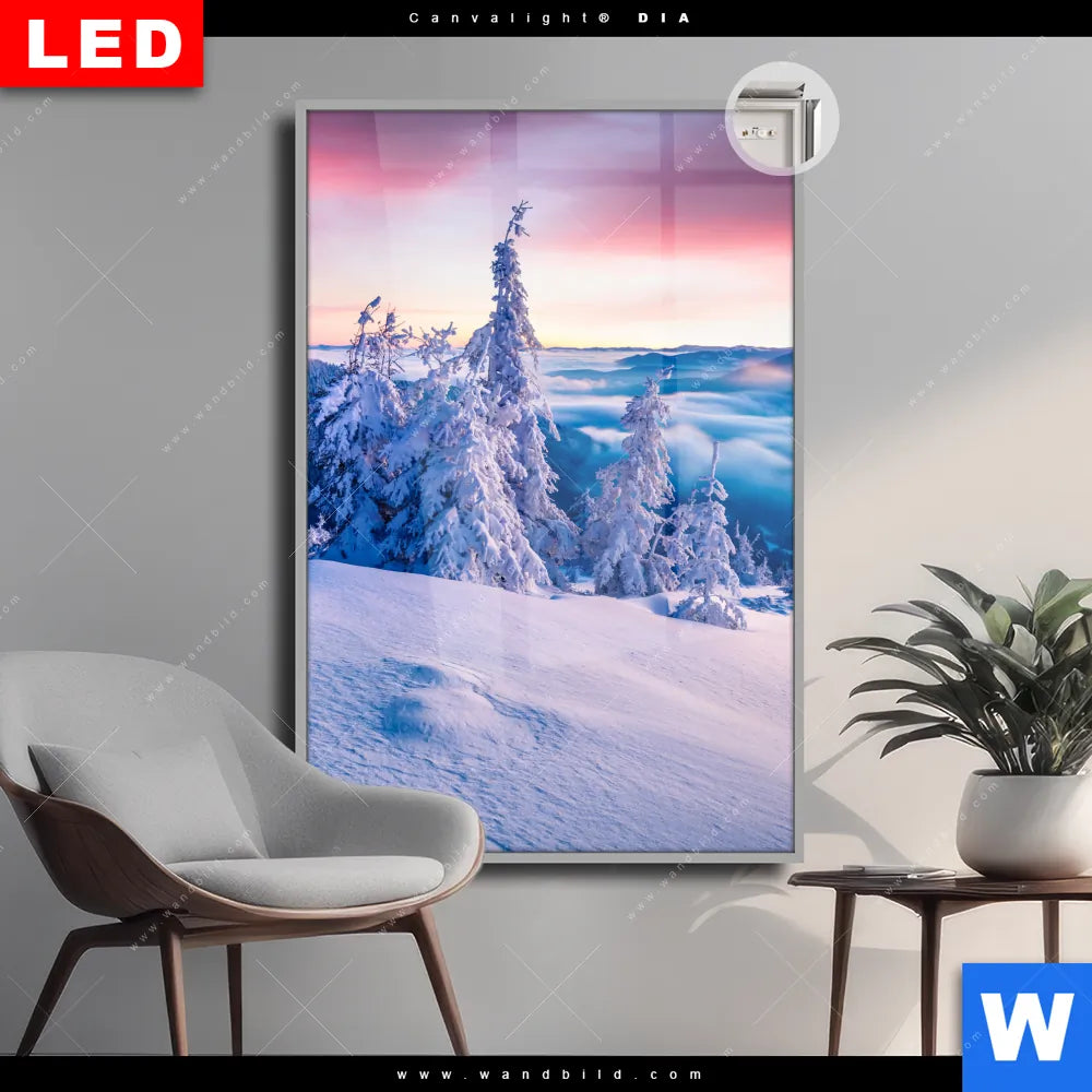 Canvalight® DIA Leuchtbild | Sonnenaufgang im Schnee | Hochformat