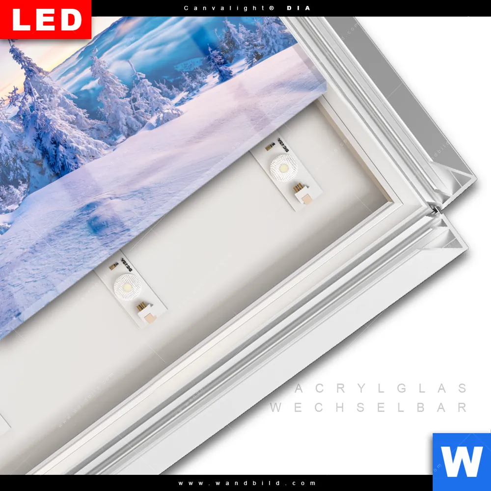 LED-Glasbild mit austauschbarem Acrylglas-Druck (Wechselbild)