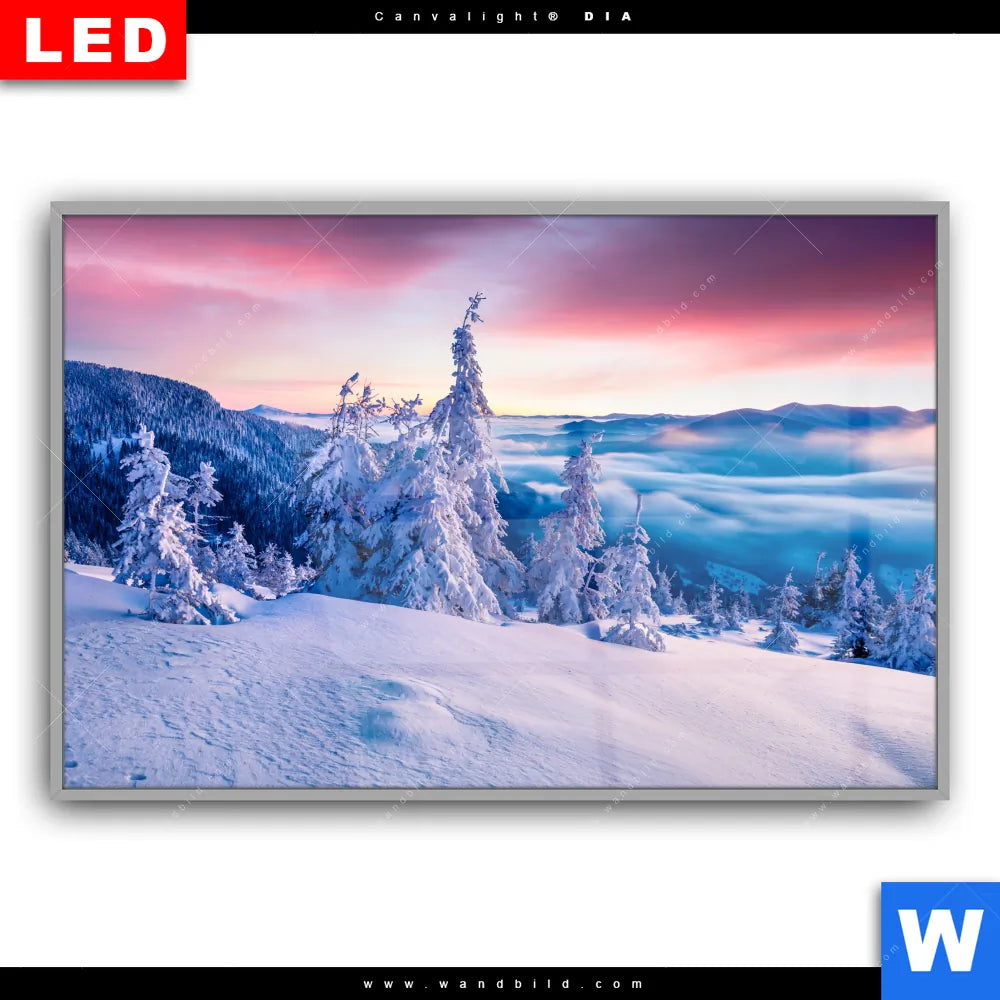 Canvalight® DIA Leuchtbild | Sonnenaufgang im Schnee | Querformat