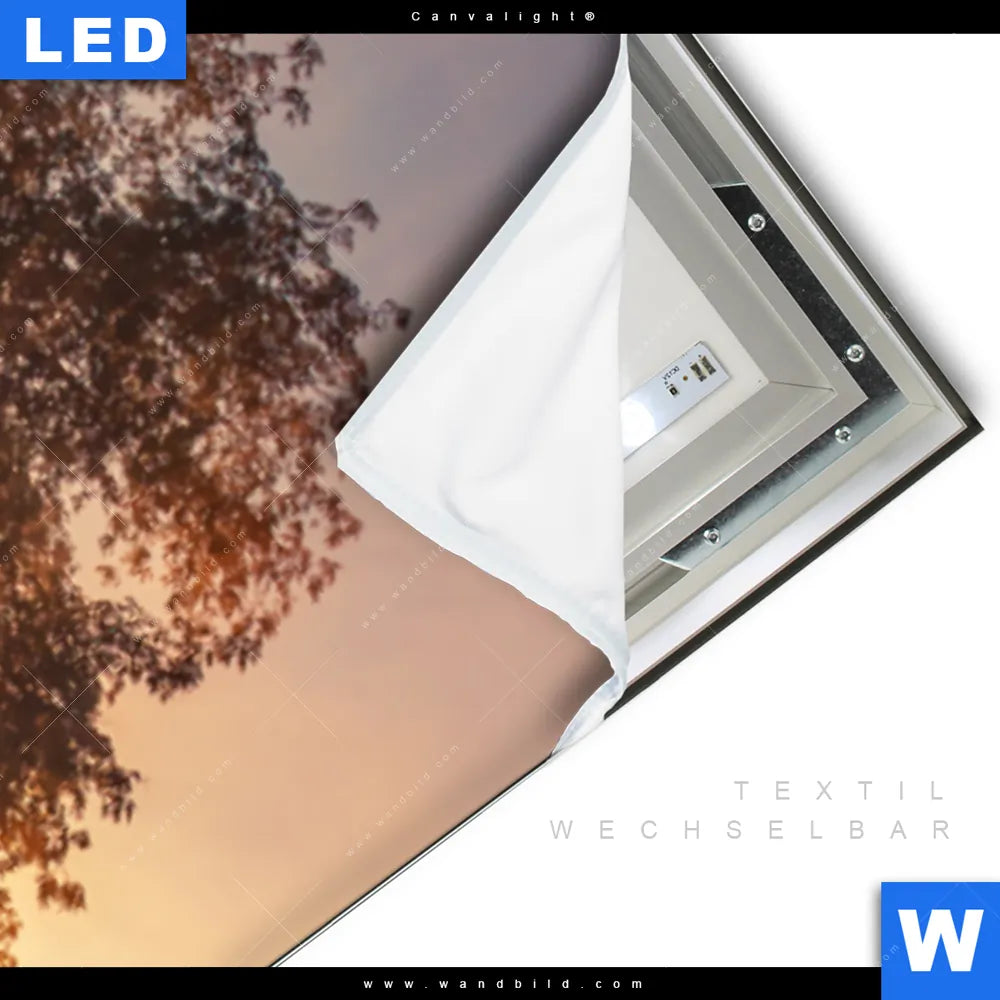LED-Textilrahmen-Bild mit austauschbarem Landschaften Textil-Druck (Wechselbild)